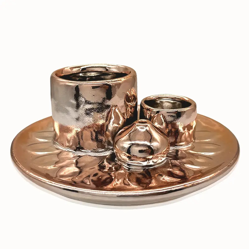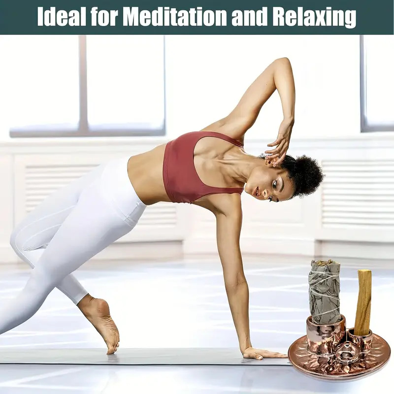 Rose 1 kos 4-v-1 Keramični Držalo za Kadilo – glazirano Stojalo za Palo Santo in Žajbelj z Palico in Svečnikom, Eleganten Dekor za Meditacijo, Jogo in Aroma-terapevtsko Sprostitev, Incense Holder 13cm