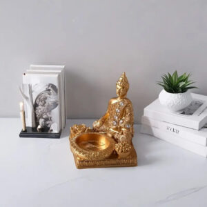 1 Elegantna zlatna Buddha skulptura s kadilnikom z diamantnimi akcenti – rezinov dizajn lotosa, perlična barva dekorativne izdelave za dom v zenovem slogu, dekoracija za dnevno sobo in vhod, izboljšanje notranje zračne kvalitete, dekoracija doma v zenovem slogu | Eleganten dekorativni predmet | Intrikatena dekoracija Buddha, Incense holder