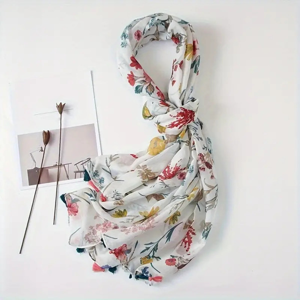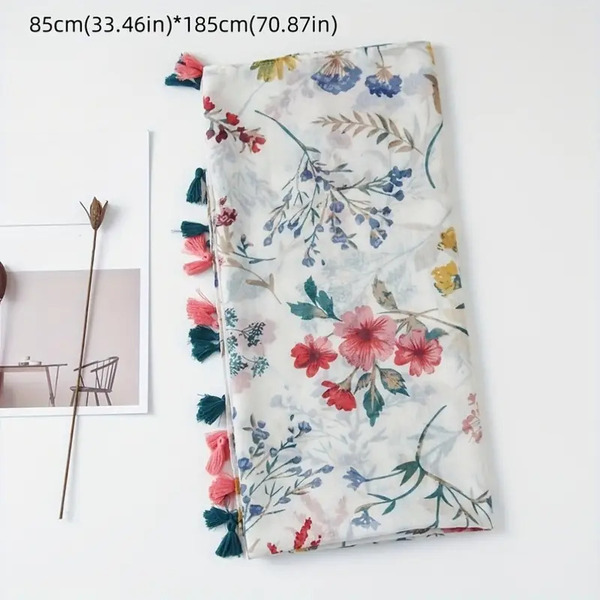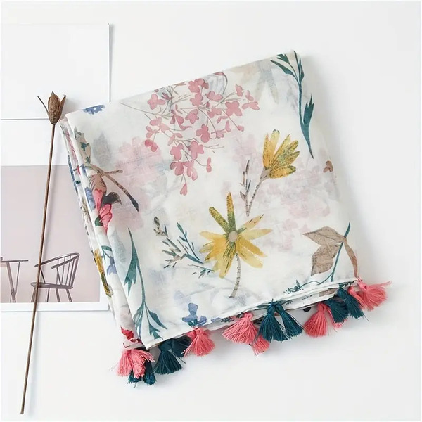 Boho šal z vzorcem cvetja – mehka poliestrska tkanina – večnamenska uporaba