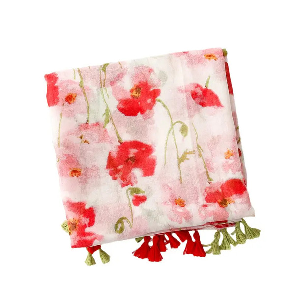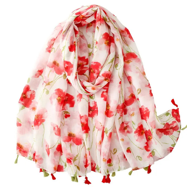 Rdeči mak eleganten šal mehka preja 180 x 90 cm – večnamenska uporaba (100% poliester)