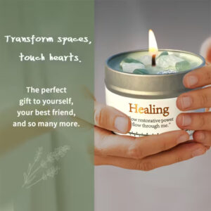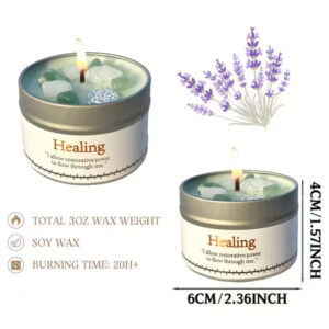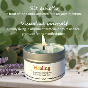 Sveča za Motivacijo – Zakona Privlačnosti s Lavando in Evkaliptusom z Zelenim & Belim Kristalom za Globoko Osredotočenost in Meditacijo, Jogo, Branje.. večnamenska uporaba