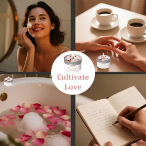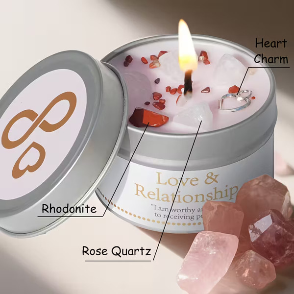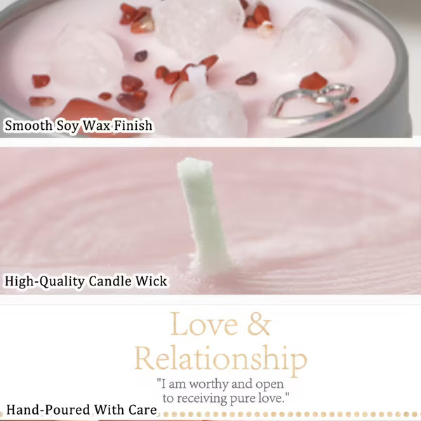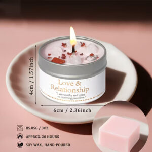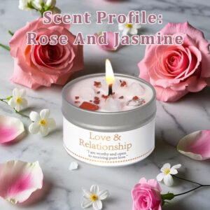 Sveča za Manifestacijo – za Ljubezen in Odnose s Kristali, Obogatena z Vrtnico in Jasminom za Harmonijo.. večnamenska uporaba