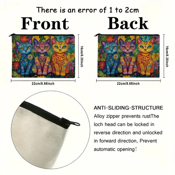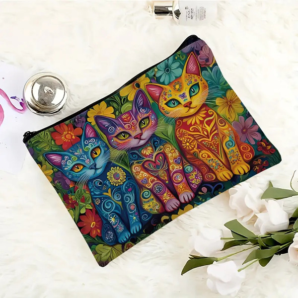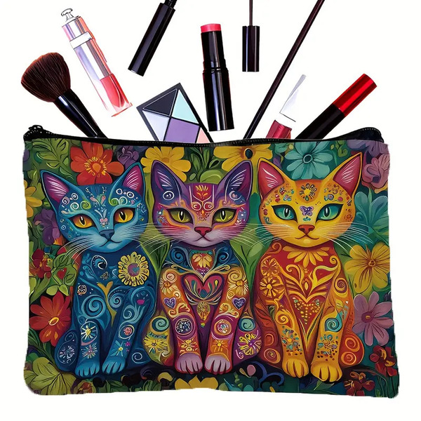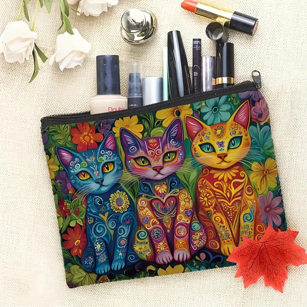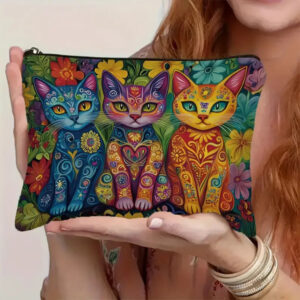 Bohemska – večnamenska (elegantna, lahka, zložljiva, potovalna, toaletna..) 3 mačke dizajn torbica z zadrgo
