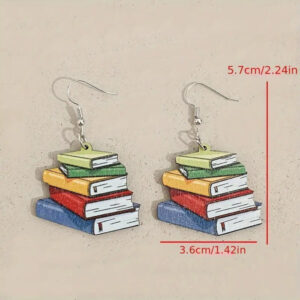 1 par retro lesnih knjižnih obeskov – barvito zloženo knjižno oblikovanje z kovinskimi kavlji, popolno za prosti čas in dogodke na kampusu, zanimiv obesek, zelo lepi uhani