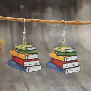 1 par retro lesnih knjižnih obeskov – barvito zloženo knjižno oblikovanje z kovinskimi kavlji, popolno za prosti čas in dogodke na kampusu, zanimiv obesek, zelo lepi uhani